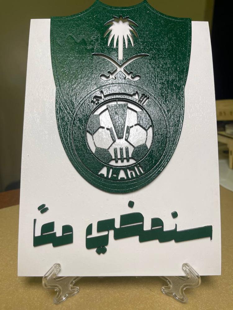 ستاند خشبي فاخر يحمل شعار النادي الأهلي وعبارة “سنمضي معًا”، مصمم بدقة لعشاق الراقي.